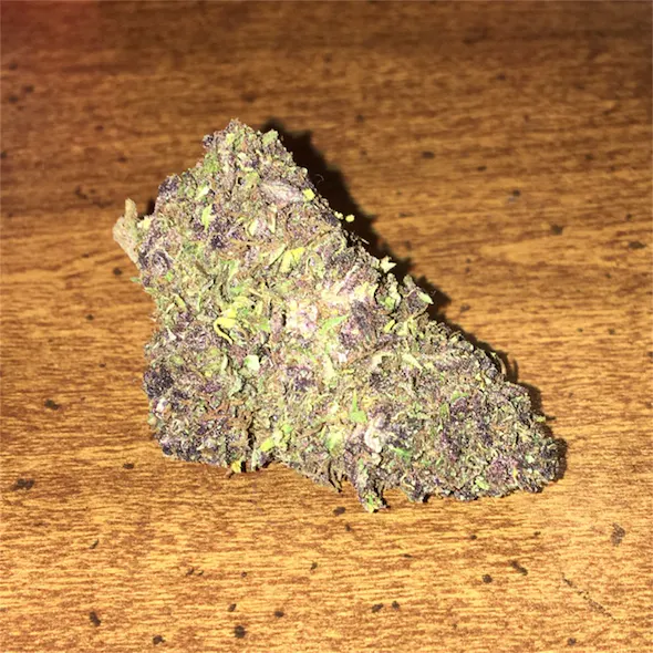 **Appearance:** Blueberry Muffin buds typically showcase a vibrant and captivating appearance. They are densely packed with trichomes, giving them a frosty, glistening quality. The nugs are often medium to large in size, with a range of green hues intermingled with deep purples and blues, reminiscent of the blueberry fruit itself. Fiery orange pistils wind their way through the colorful foliage, adding to its visual appeal.